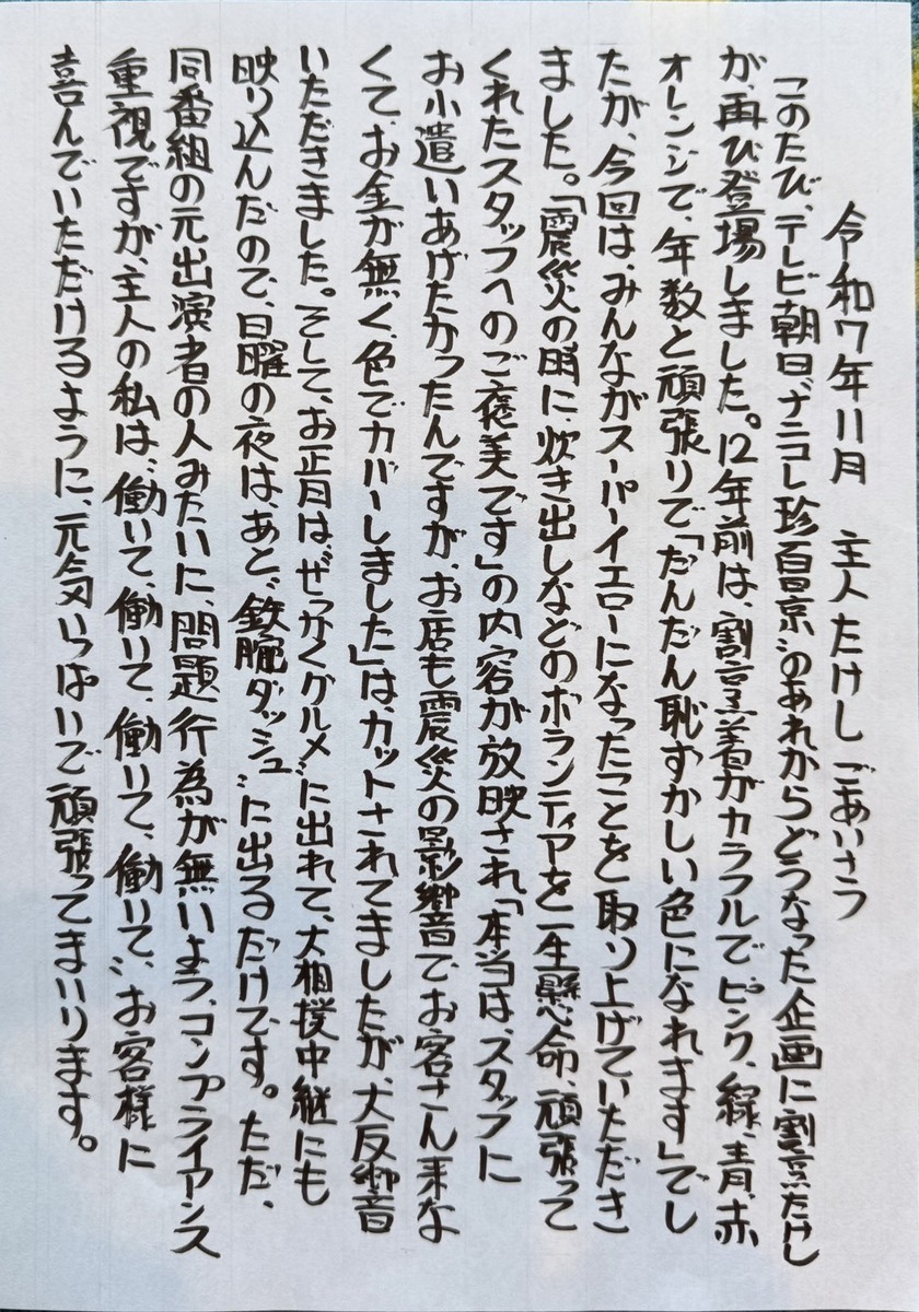 이것도 저희 가게를 이용하시는 고객, 응원해 주시는 여러분의 덕분입니다🙏