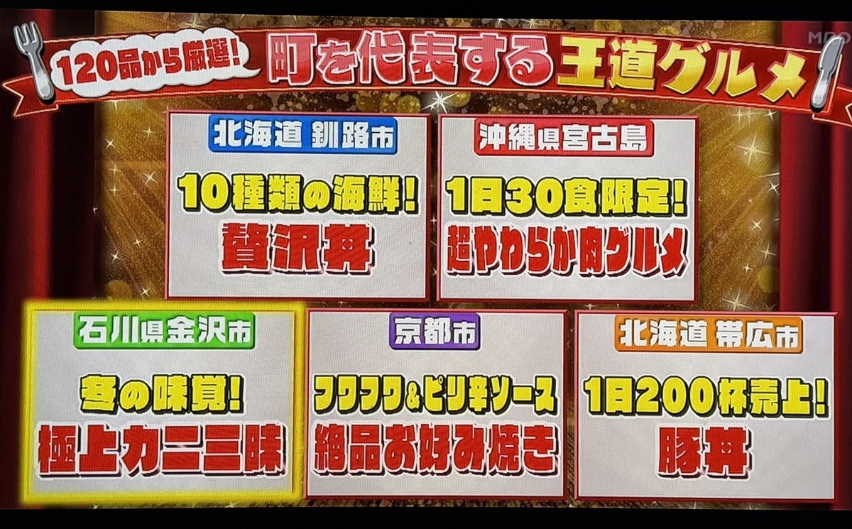 我们非常荣幸Kappo Takeshi的蟹肉怀石料理套餐能够从节目中120道菜肴中脱颖而出,入选“最具代表性的城镇美食”五大菜品之一!🎊